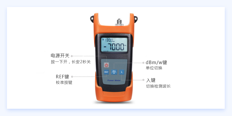 光功率计多用于绝对光功率检测或某一段链路中的光功率耗损检测。飞速(FS)手持光功率计采用大面积探测器,大幅度的提高了其稳定性及可靠性,拥有超宽的光功率测试范围、精准的测试精度以及全新的REF定义和接通接口设计。